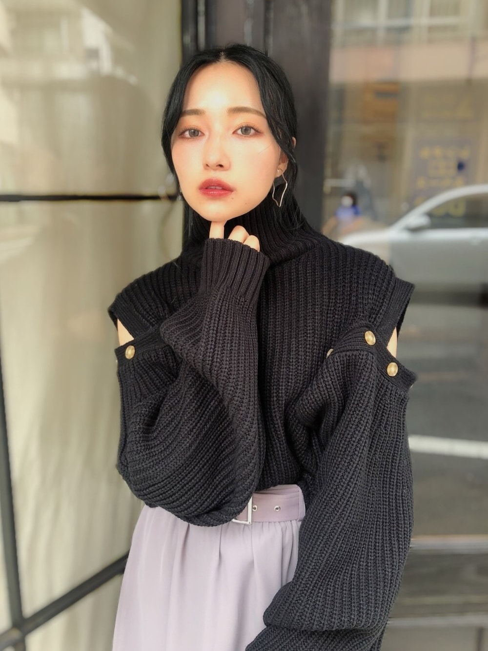 ウォッチありがとうございます😊 私服👗✨ 阪急梅田popupで 先行発売している あざとニットです🧶🤍 ハイネックのゆるさも 最強に、可愛くて 横から見たシルエットも とっても綺麗で 華奢見えするニットです^_^ 袖の切り込みもあざとい。。