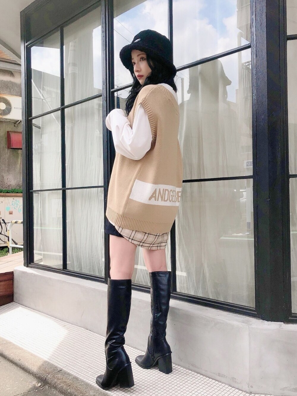 ウォッチありがとうございます😊 私服👗✨ ニットベストは 後ろにロゴが入ってて ポイントになっています^ ^ 裾からチラッと見える チェックシャツがかわいい❤️