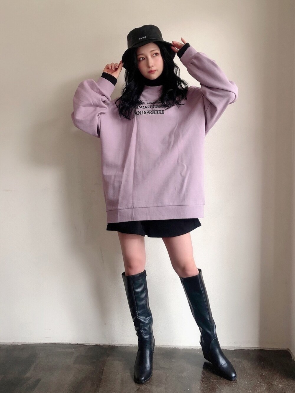 ウォッチありがとうございます😊 私服👗✨ 大きめトップスは ミニ丈のボトムと合わせると 女の子らしくて可愛い^ ^ レザーバケハで カジュアルにしつつも 大人っぽく🖤🖤