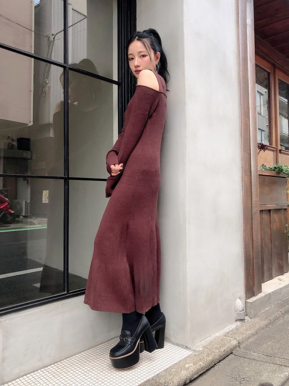 ウォッチありがとうございます😊 私服👗✨ ニットワンピース^ ^ ロングニットは大人な女性の印象に🤎 肩はアシンメトリーに 空いていてドキッとするデザイン^ ^ 開き過ぎていないので キャミなどの肩紐も見えません^ ^