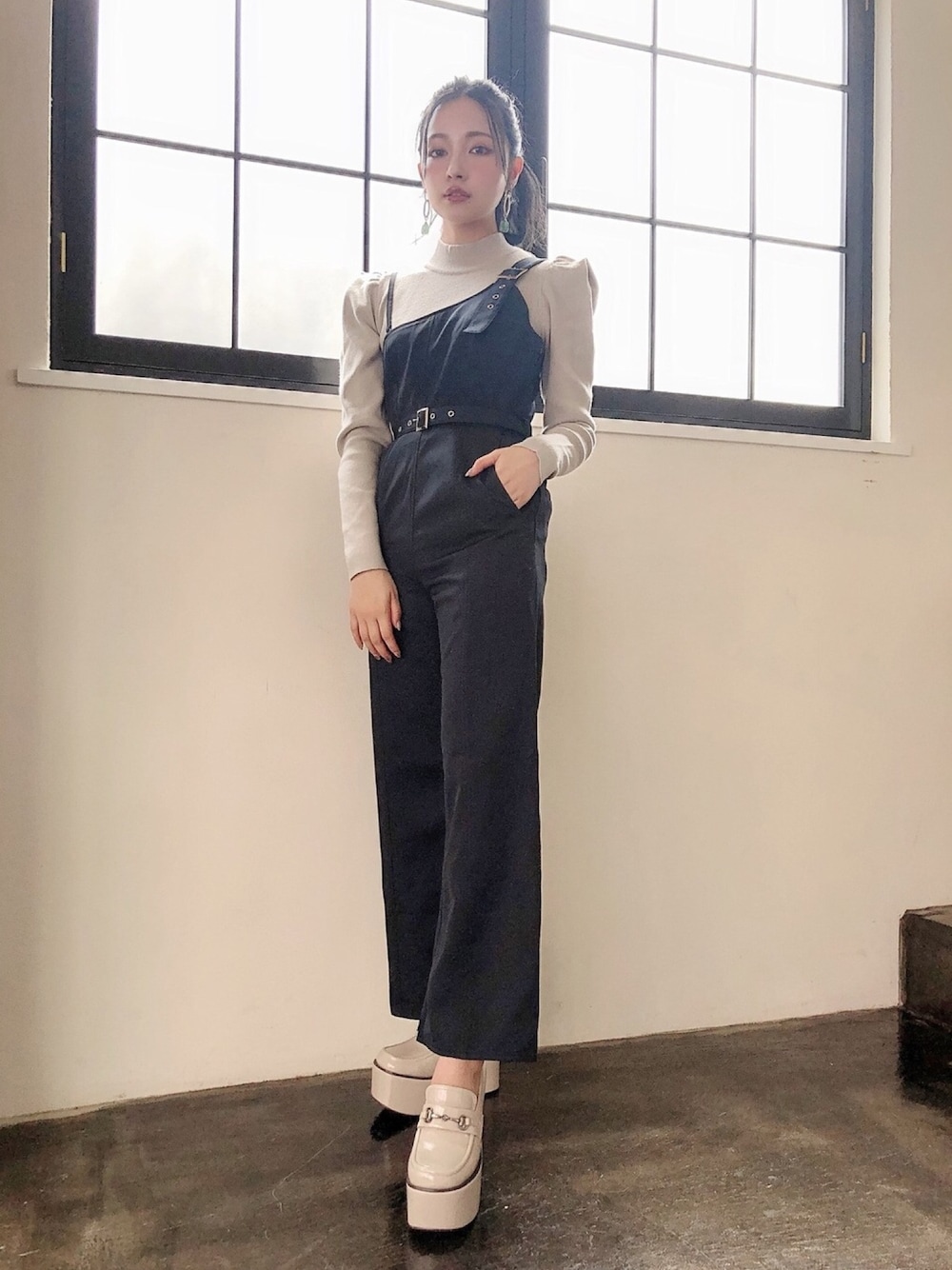 ウォッチありがとうございます😊 私服👗✨ このオールインワン お気に入りです^ ^ パンツスタイルでかっこよくて インナーには このニットを合わせるのがおすすめ🤍 黒のオールインワンには このベージュか ライムを合わせてもかわいいです💚