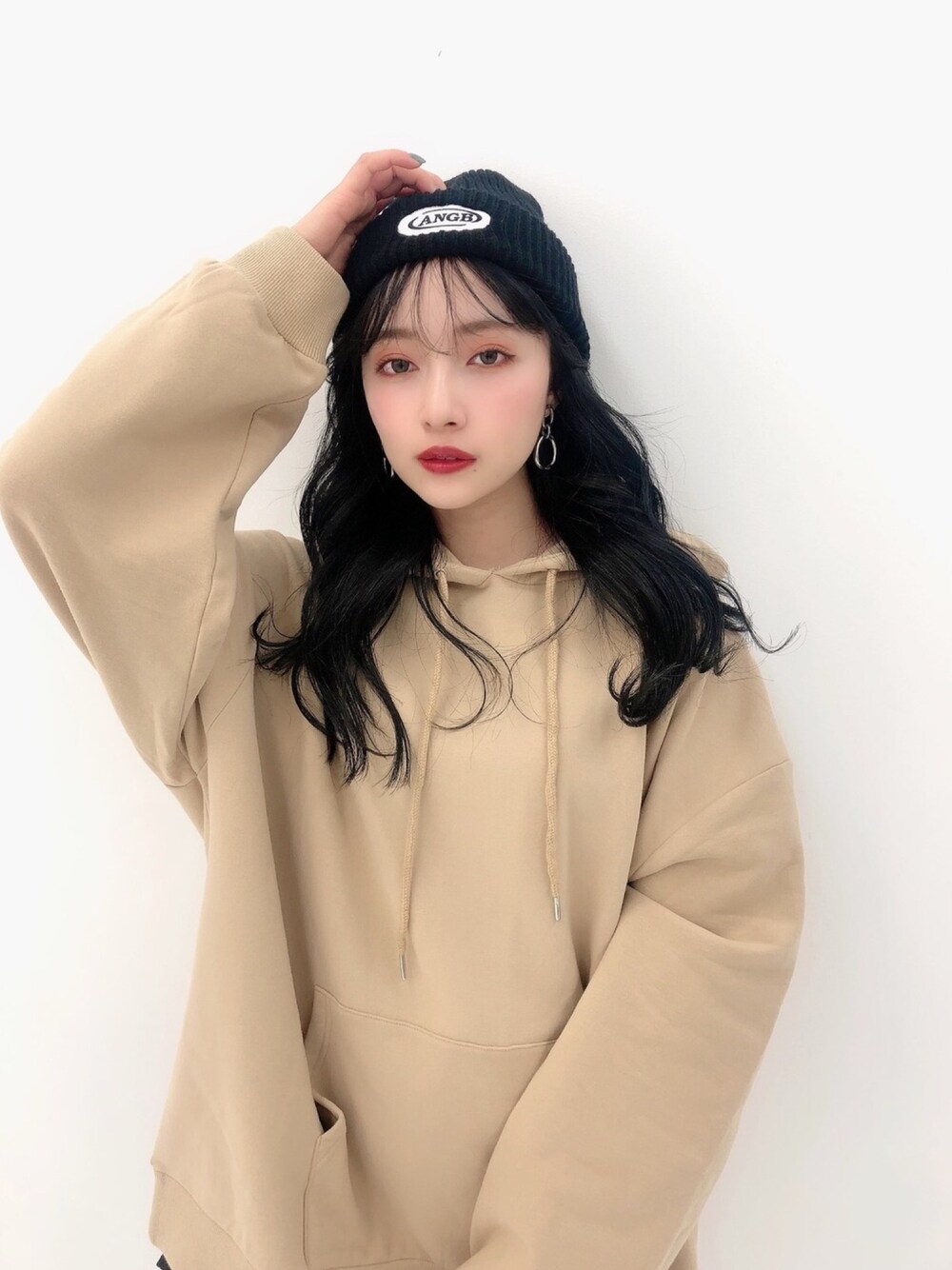 村瀬紗英のニットキャップ/ビーニー「【UNISEX】ロゴワッペンニット帽」を使ったコーディネート