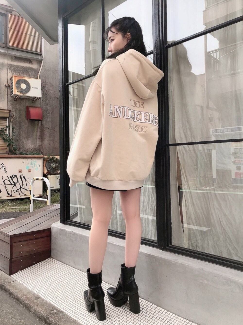 ウォッチありがとうございます😊 私服👗✨ 楽で大好きなパーカー♡ 裏起毛が気持ちいい^_^ 後ろのアップリケは サテン生地になってるのがポイントです🖤