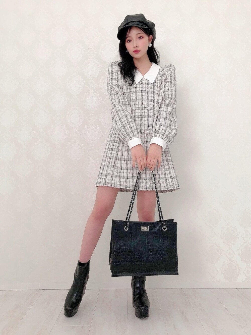 村瀬紗英のワンピース「ダブルボタンツィードワンピ」を使ったコーディネート