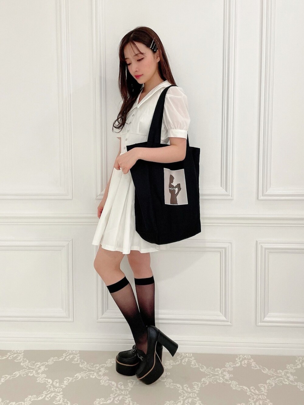 ウォッチありがとうございます😊 私服👗❤︎ シンプルな白ワンピ^ ^ 襟やプリーツのスカートが 可愛いデザイン😍💕 シルエットのトート とっても人気です^_^