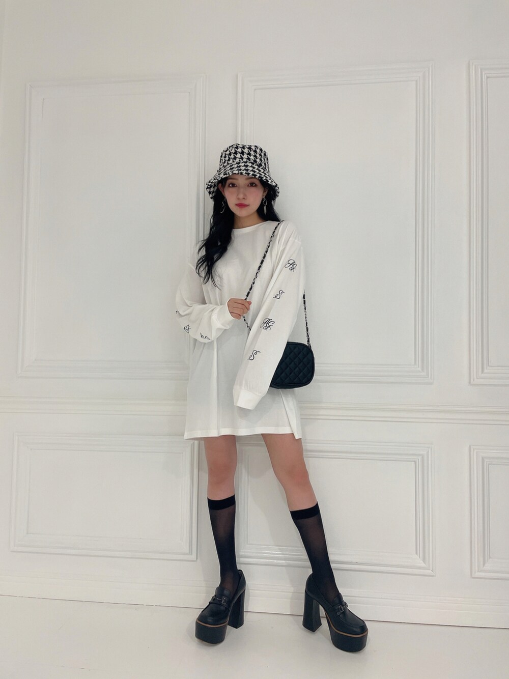 村瀬紗英のハット「【SELECT】千鳥バケットハット」を使ったコーディネート