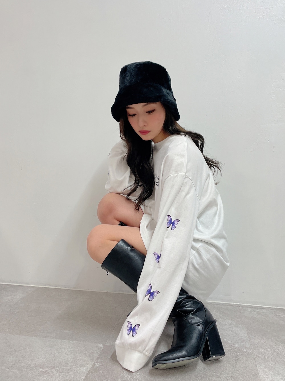 ウォッチありがとうございます😊 私服👗🤍 ファーバケハ♡ 秋冬に活躍^ ^ 袖の🦋がポイントになってて可愛い^_^