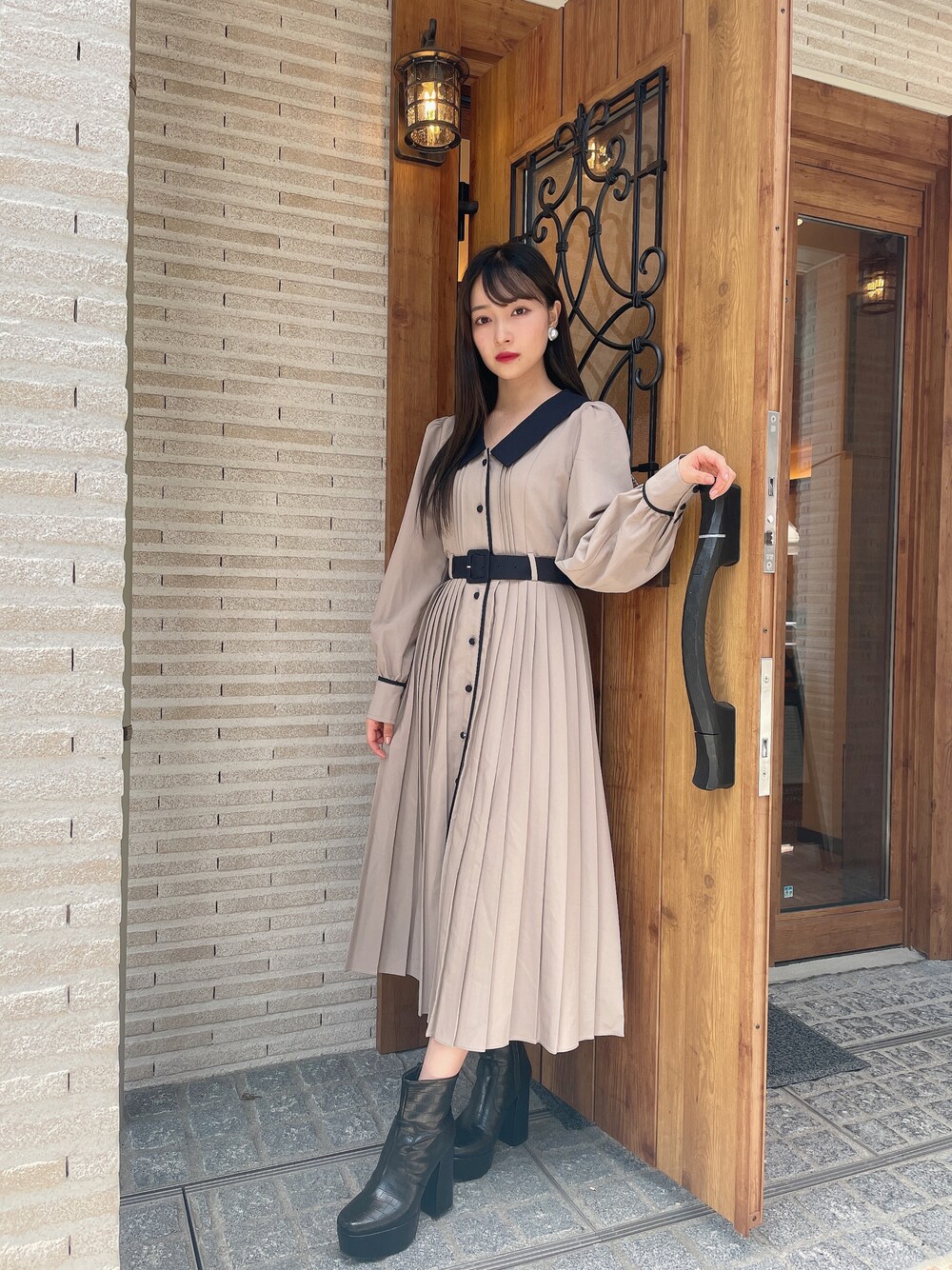 村瀬紗英のシャツワンピース「プリーツシャツワンピ」を使ったコーディネート