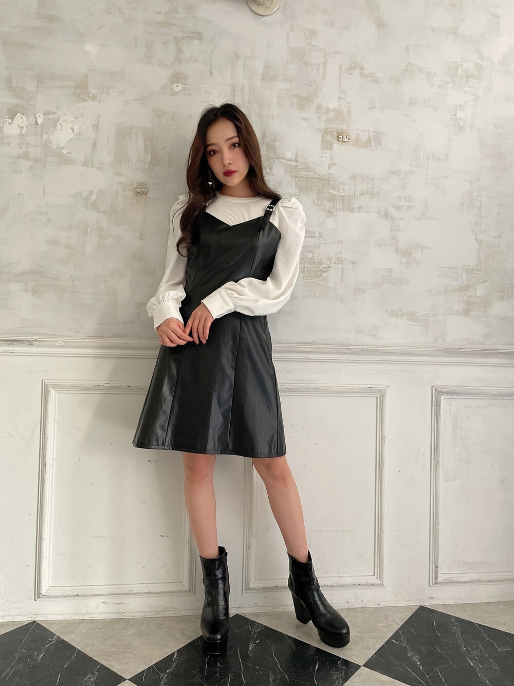 村瀬紗英のジャンパースカート「フェイクレザージャンスカ」を使ったコーディネート