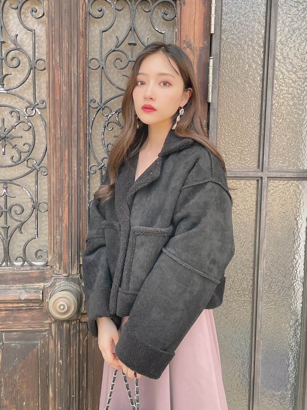 村瀬紗英のムートンコート「フェイクムートンショートジャケット」を使ったコーディネート