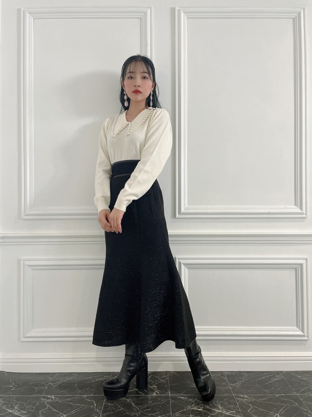 ウォッチありがとうございます😊 私服👗🤍 パール襟のニットトップス^ ^ レイヤードしても可愛いし トップスとしても活躍するよ🤍