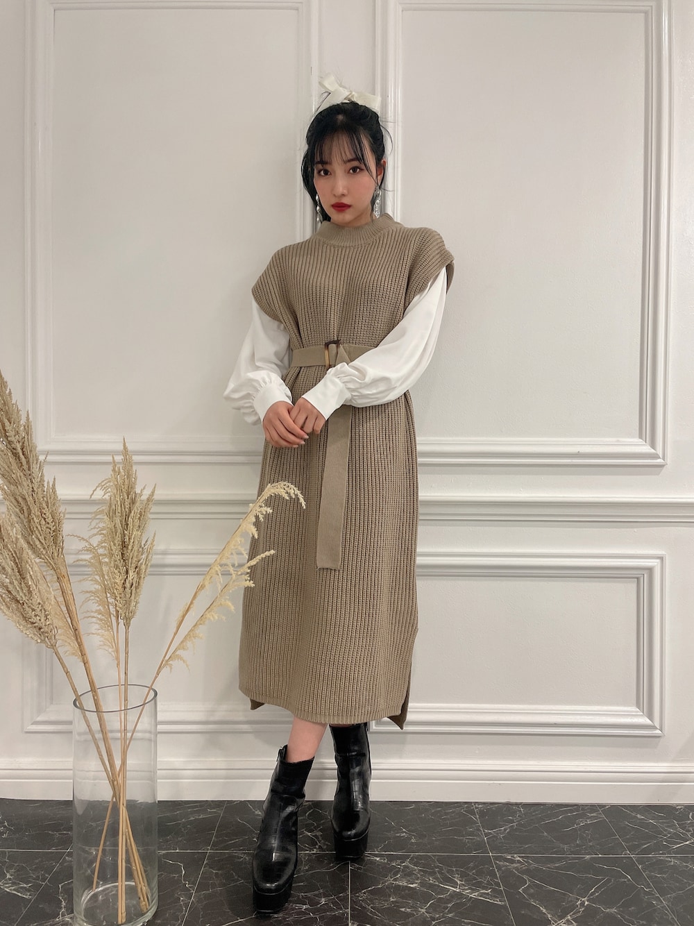 村瀬紗英のワンピース「ブラウススリーブニットワンピ」を使ったコーディネート