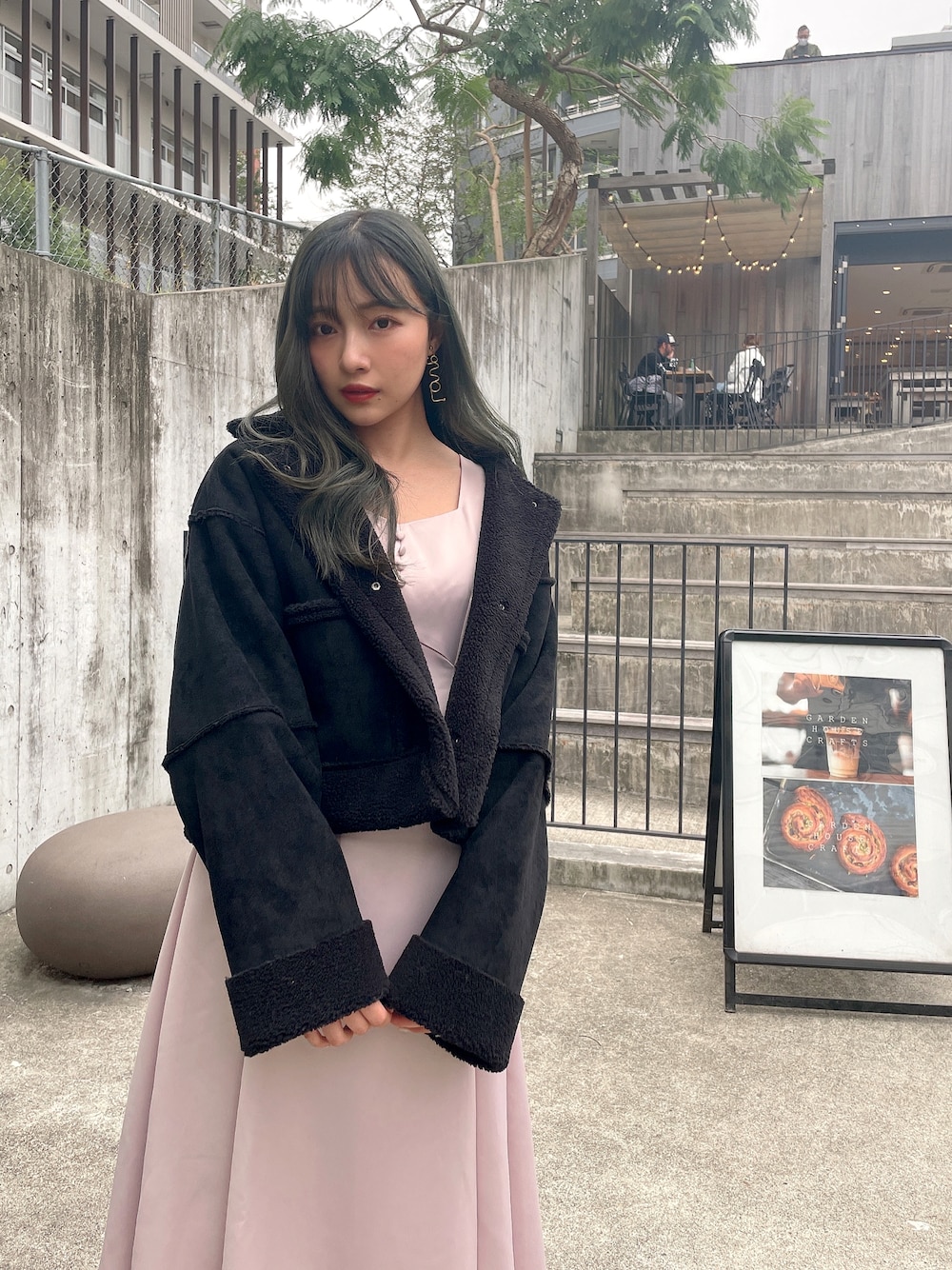 村瀬紗英のムートンコート「フェイクムートンショートジャケット」を使ったコーディネート