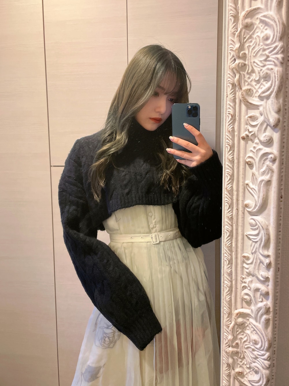 ウォッチありがとうございます😊 私服👗🤍 ショートニット🤍 ワンピに合わせても スタイルアップできて暖かいです☺️