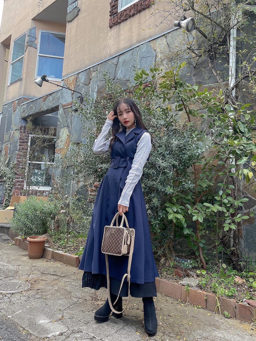 村瀬紗英のショルダーバッグ「モノグラムショルダーバッグ」を使ったコーディネート