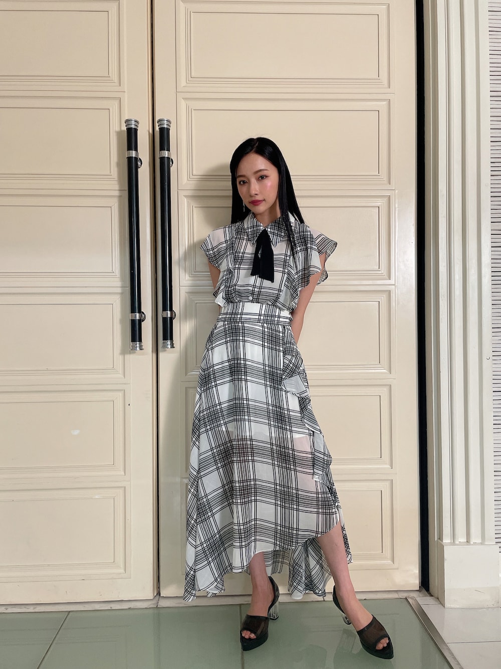 村瀬紗英のシャツ/ブラウス「リボン付チェックブラウス」を使ったコーディネート