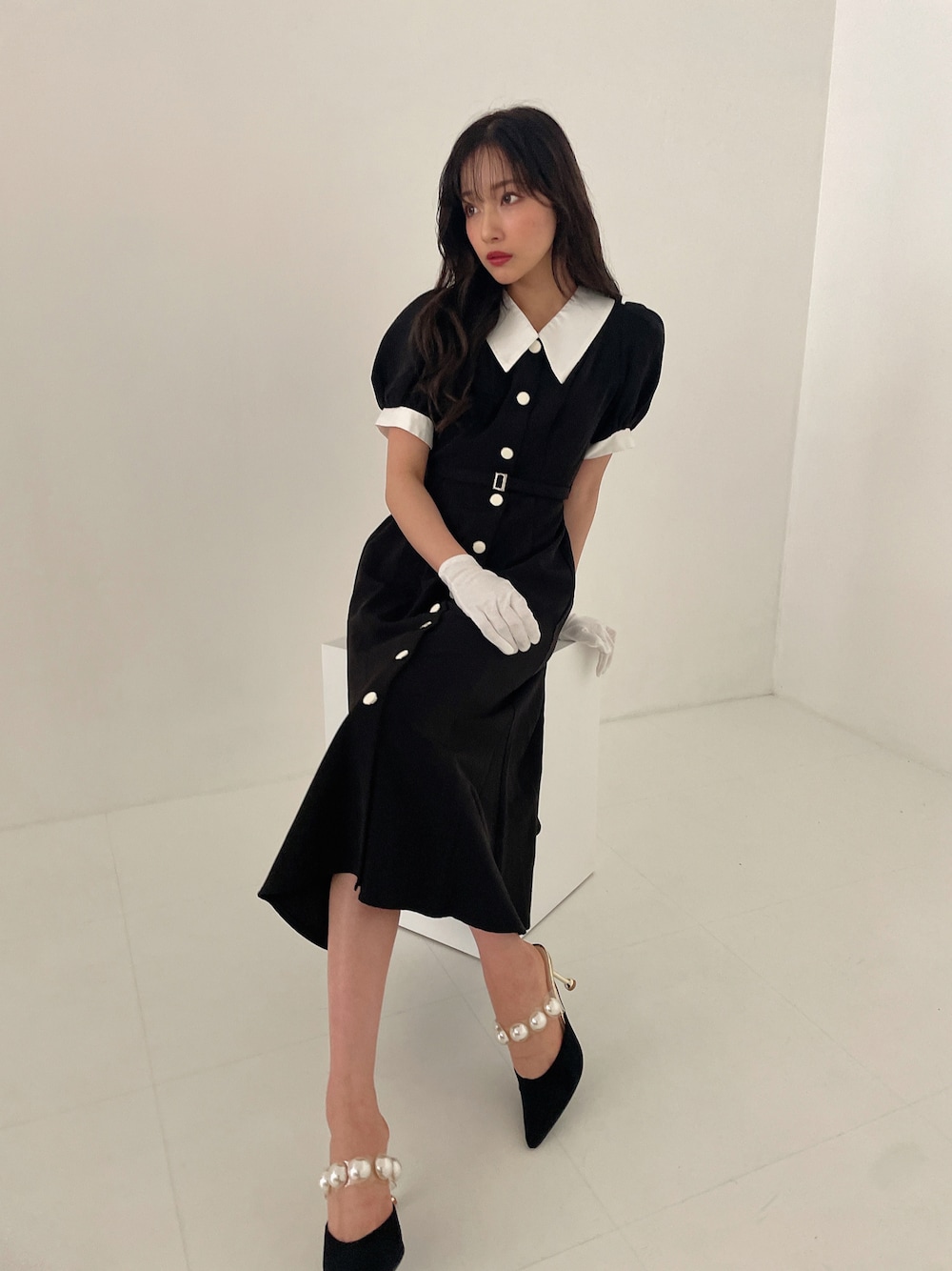 ウォッチありがとうございます😊 私服👗♡ 黒と白のワンピース^ ^ マーメイドスカートや パフスリーブでメリハリのある 綺麗なシルエットに✨