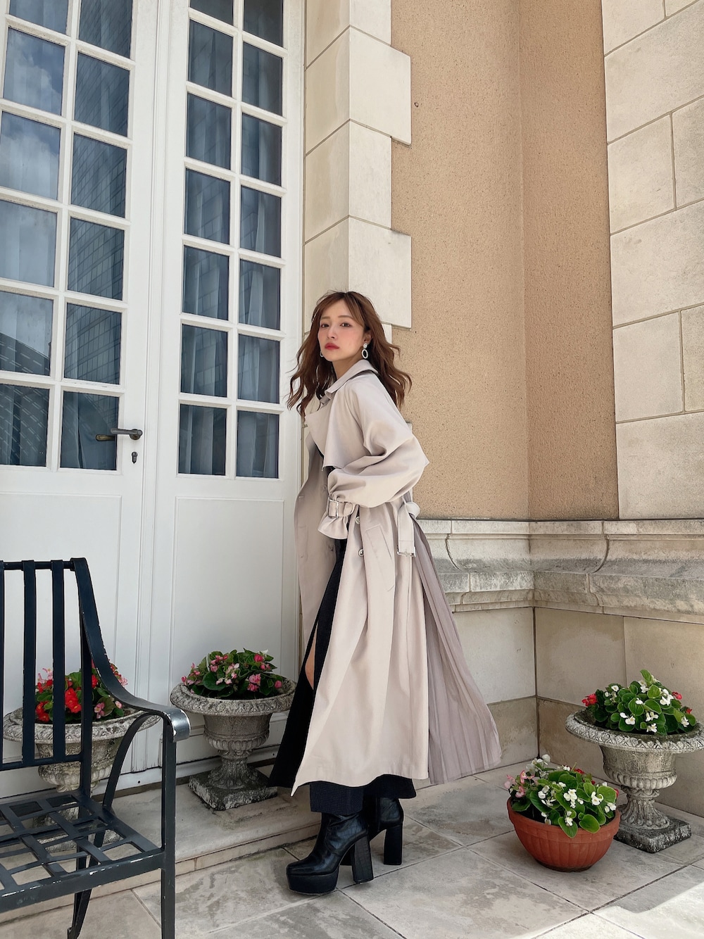 村瀬紗英のトレンチコート「プリーツトレンチコート」を使ったコーディネート
