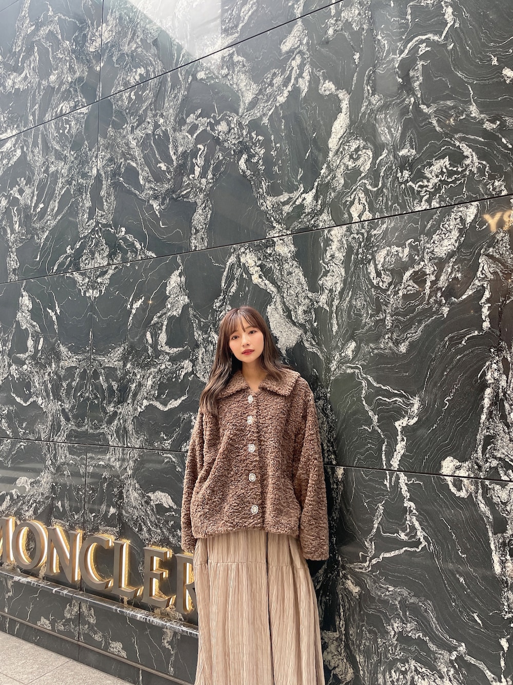 村瀬紗英のダウンジャケット/コート「フェイクボアコート」を使ったコーディネート