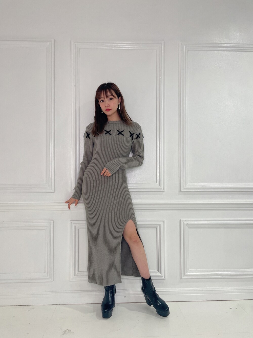 村瀬紗英のワンピース「スピンドルスリットニットワンピ」を使ったコーディネート