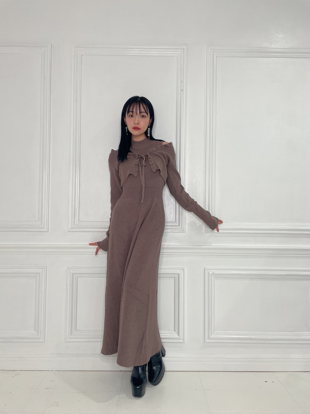 村瀬紗英のワンピース「ニットカーデワンピセット」を使ったコーディネート