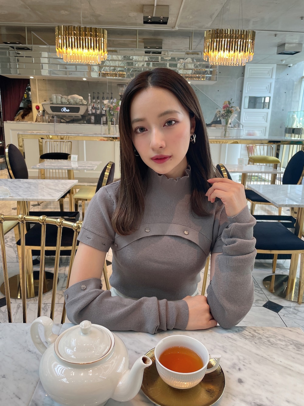 村瀬紗英のニット/セーター「ボタンニットトップス」を使ったコーディネート