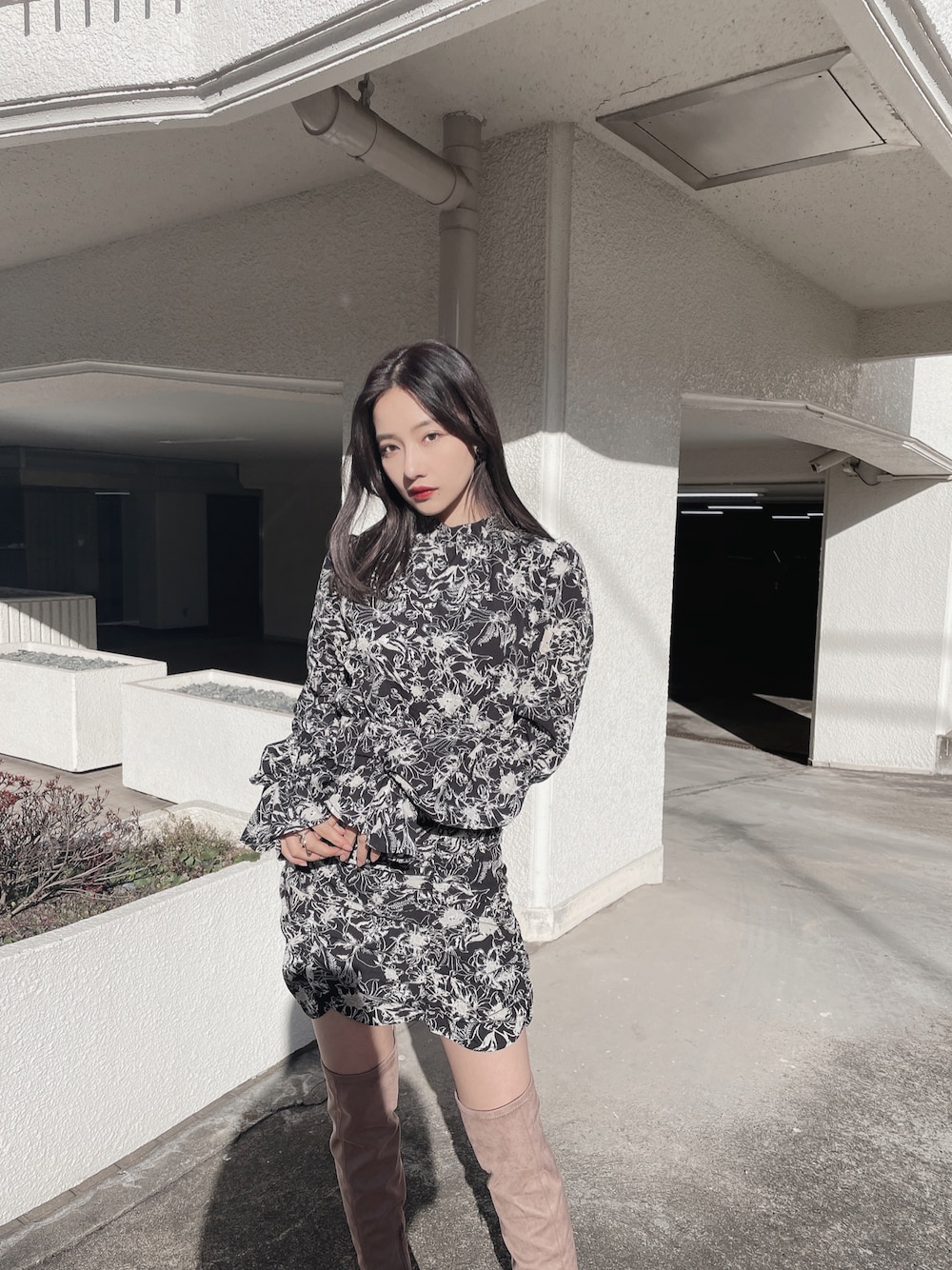 村瀬紗英のワンピース「フラワーギャザーミニワンピ」を使ったコーディネート