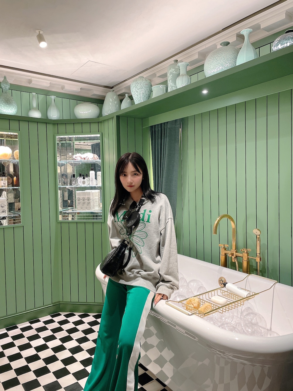村瀬紗英のショルダーバッグ「ポーチ付きクロコショルダーバッグ」を使ったコーディネート