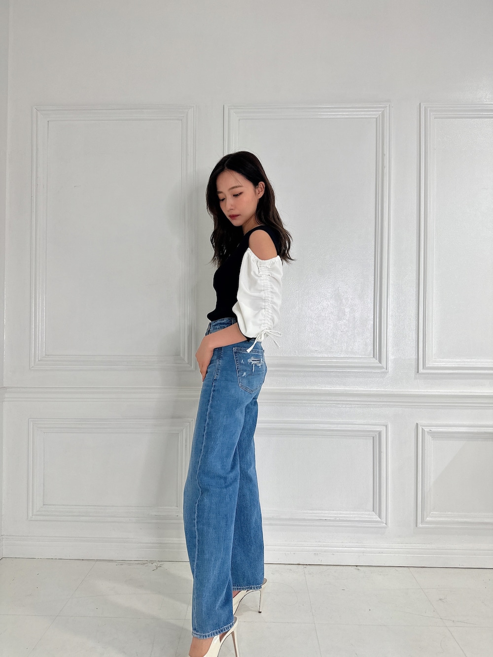 ウォッチありがとうございます😊 私服👗🤍 デニムコーデ^ ^ フェミニンなコーデにも 大人カジュアルなコーデにも ぴったりなトップスです🫶🏻