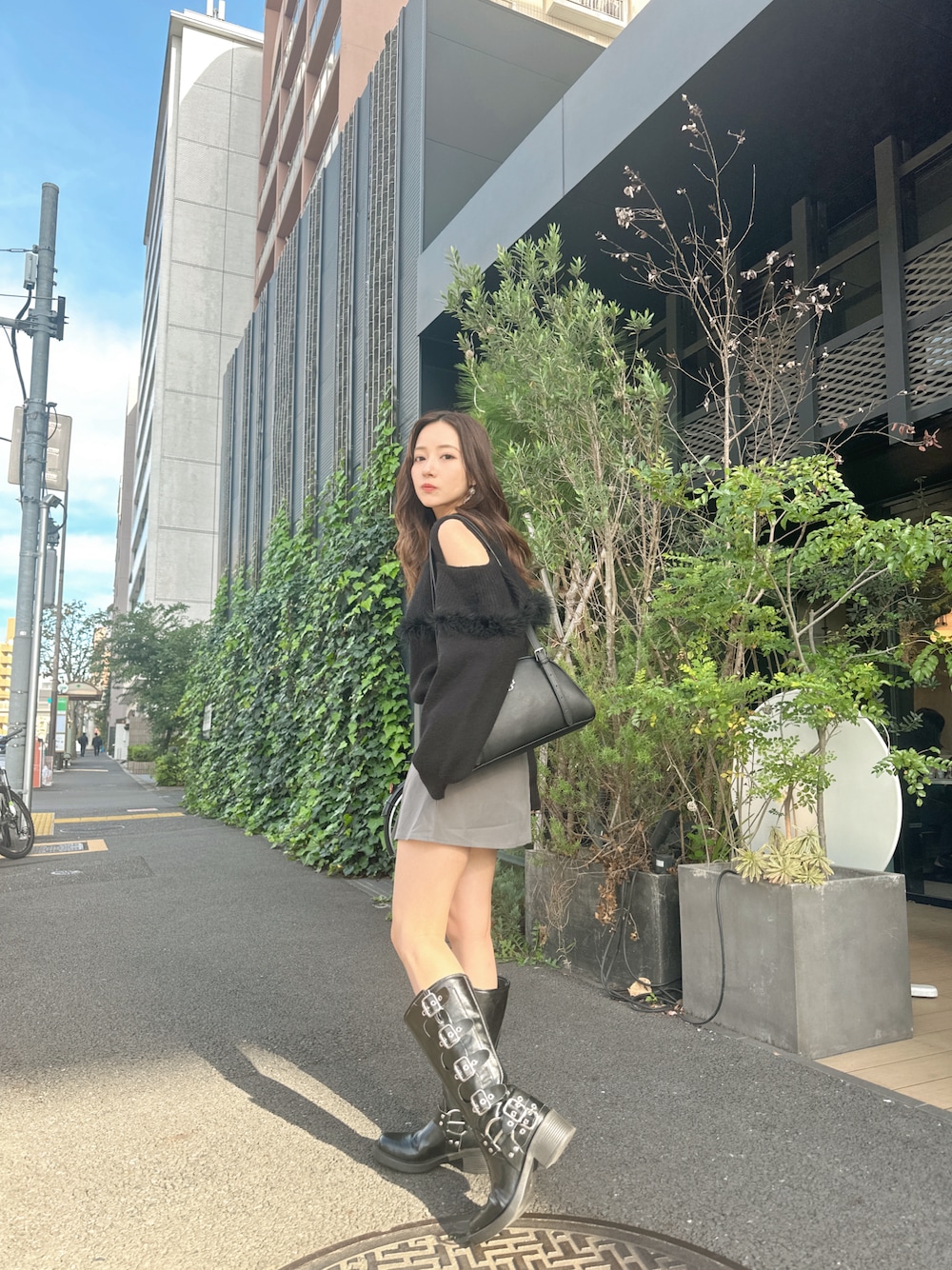 村瀬紗英のニット/セーター「オープンショルダーニットトップス」を使ったコーディネート