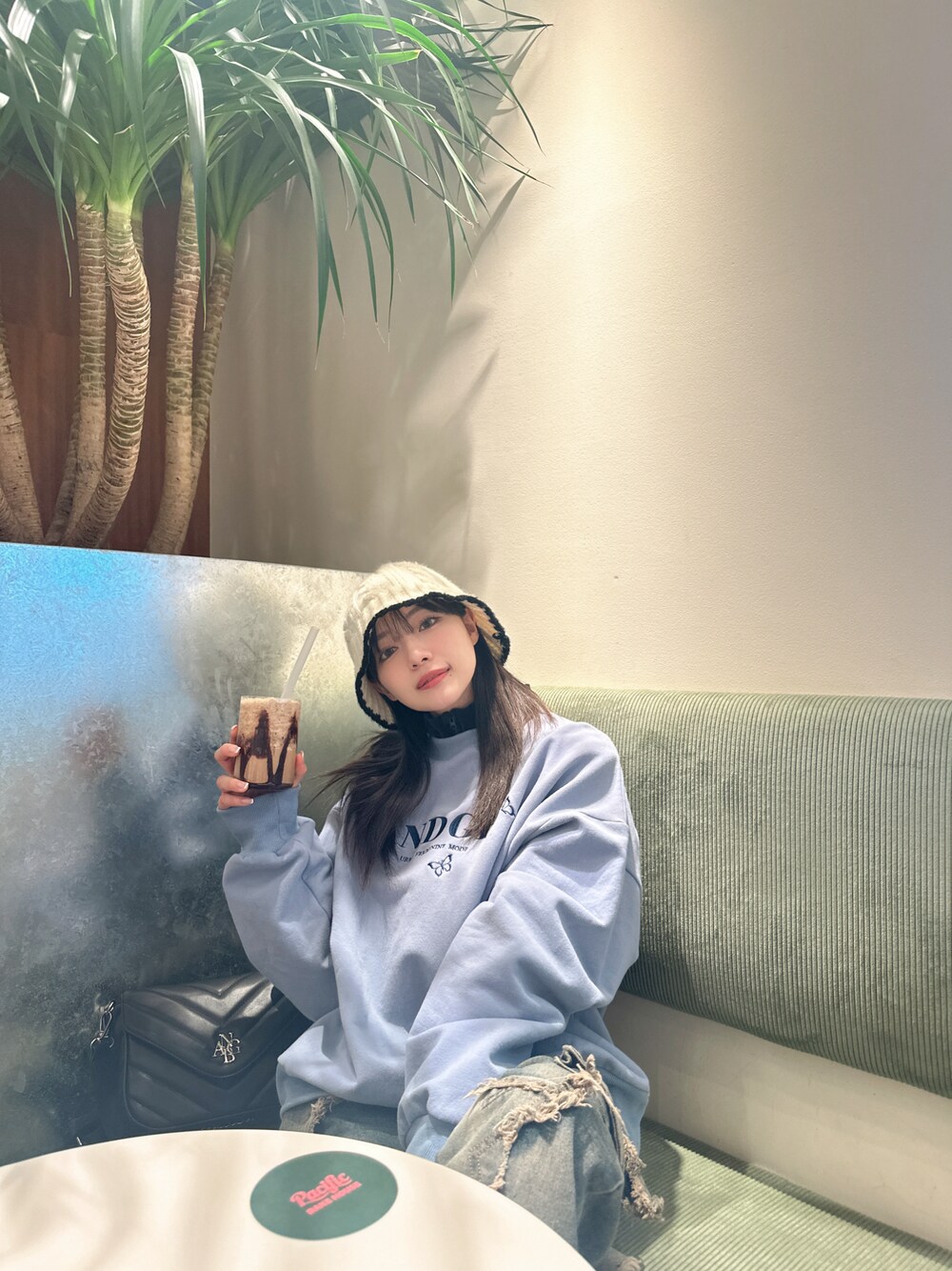 村瀬紗英のスウェット「UNISEX バタフライロゴ裏起毛スウェット」を使ったコーディネート