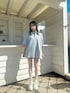 私服👗♡ ユニセックスのポロシャツ^_^ オーバーサイズでゆったりなシルエット! ライトブルーのポロ珍しい🩵👕