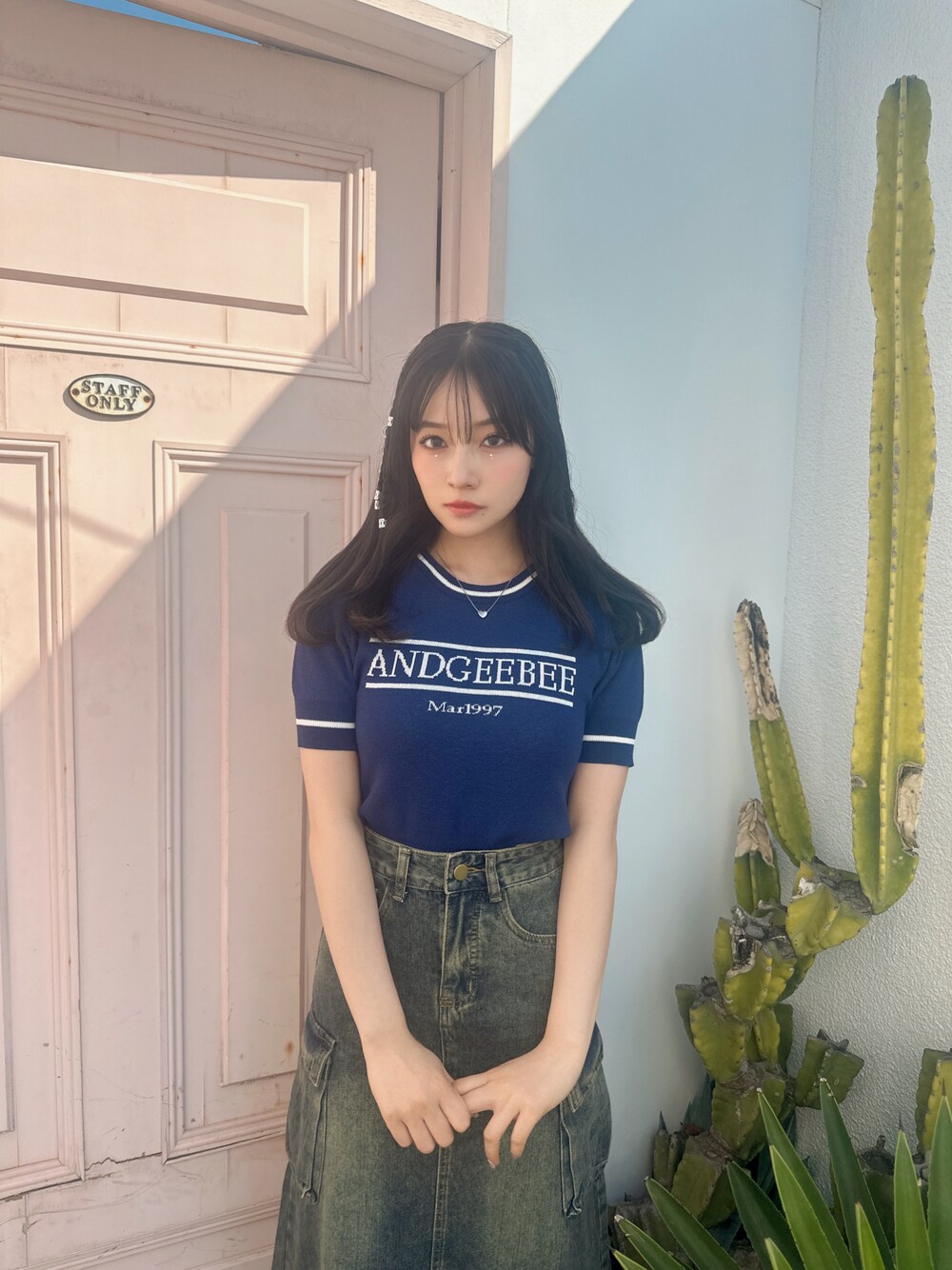 村瀬紗英のニット/セーター「ラインロゴミニニットトップス」を使ったコーディネート