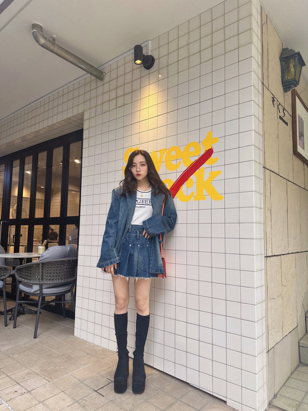 私服👗♡ デニムジャケットのセットアップ☺️ バッグは差し色で🫶🏻