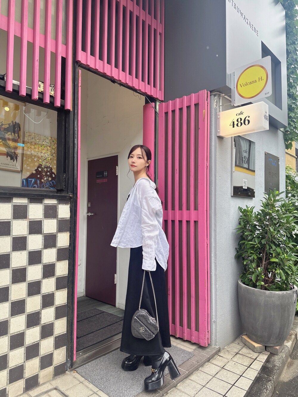村瀬紗英のショルダーバッグ「ラメハートキルティングショルダーバッグ」を使ったコーディネート