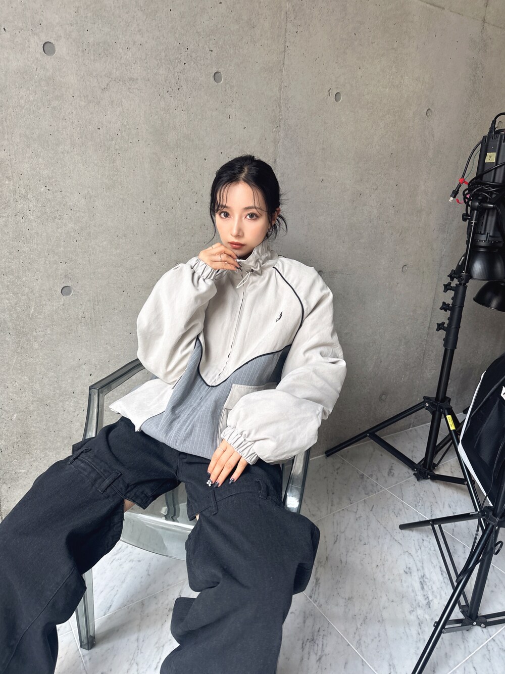村瀬紗英のブルゾン「UNISEX パイピングトラックブルゾン」を使ったコーディネート