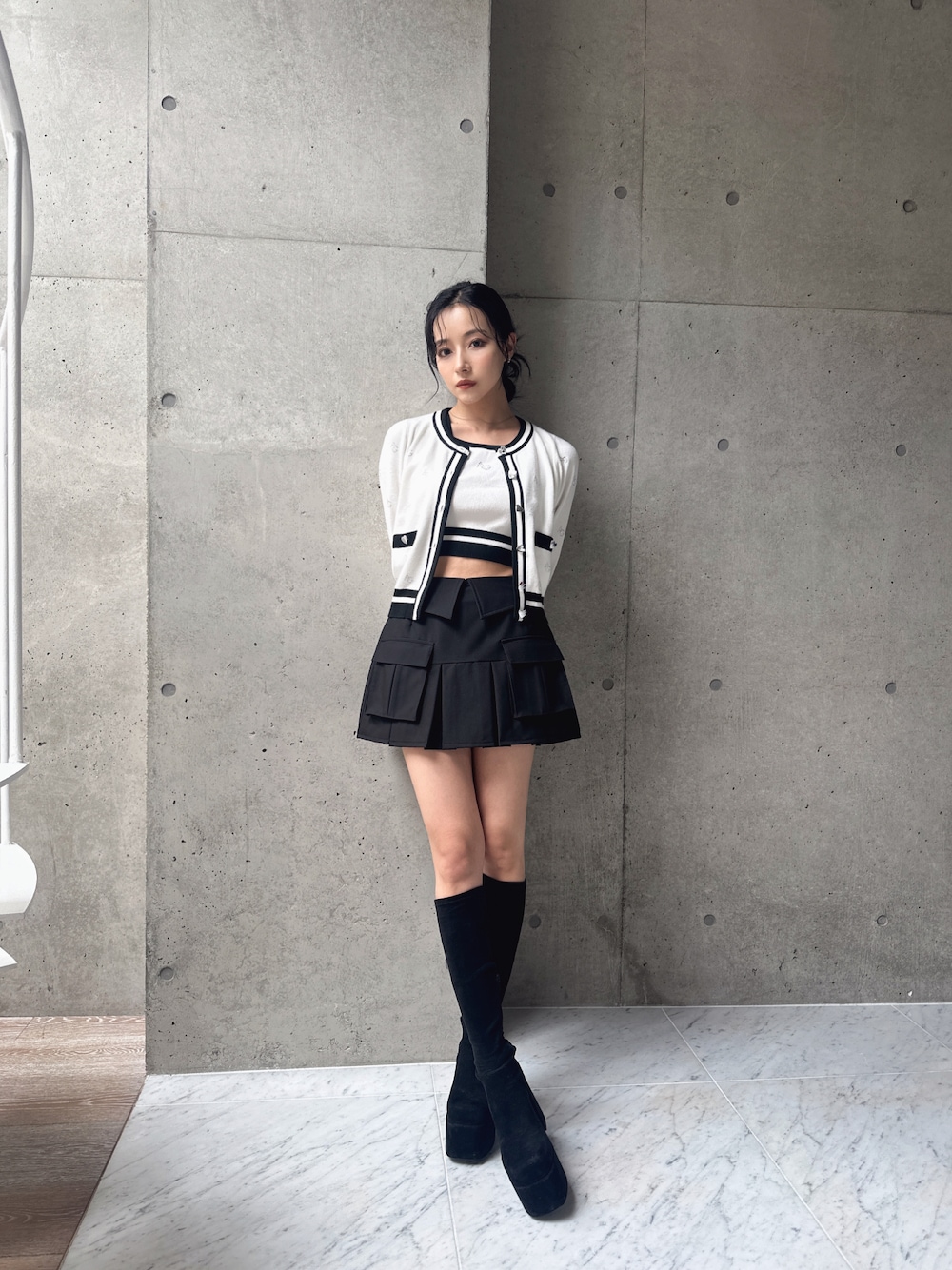 村瀬紗英のアンサンブル「ラインストーンパターンアンサンブルニット」を使ったコーディネート