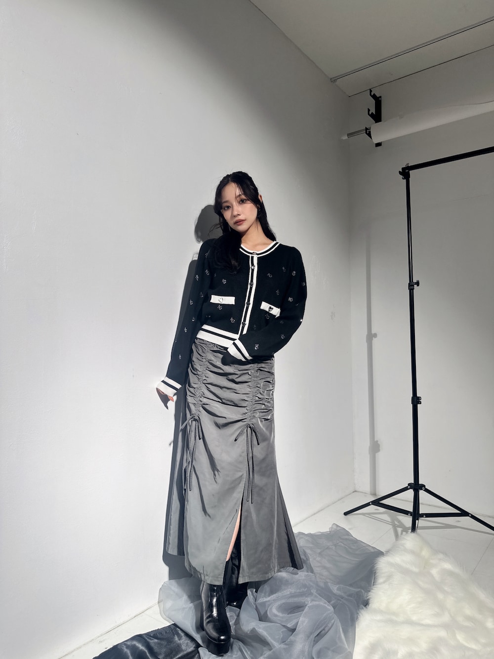 村瀬紗英のアンサンブル「ラインストーンパターンアンサンブルニット」を使ったコーディネート
