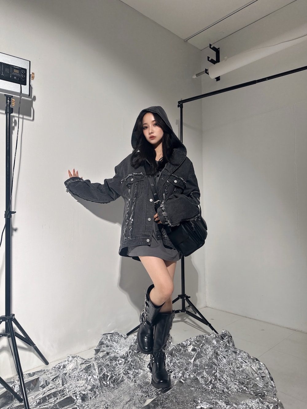 村瀬紗英のデニムジャケット「UNISEX フーディデニムジャケット」を使ったコーディネート