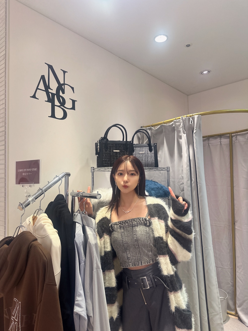 私服👗♡ ボーダーのシャギーニットって パンク感でて好き❤️