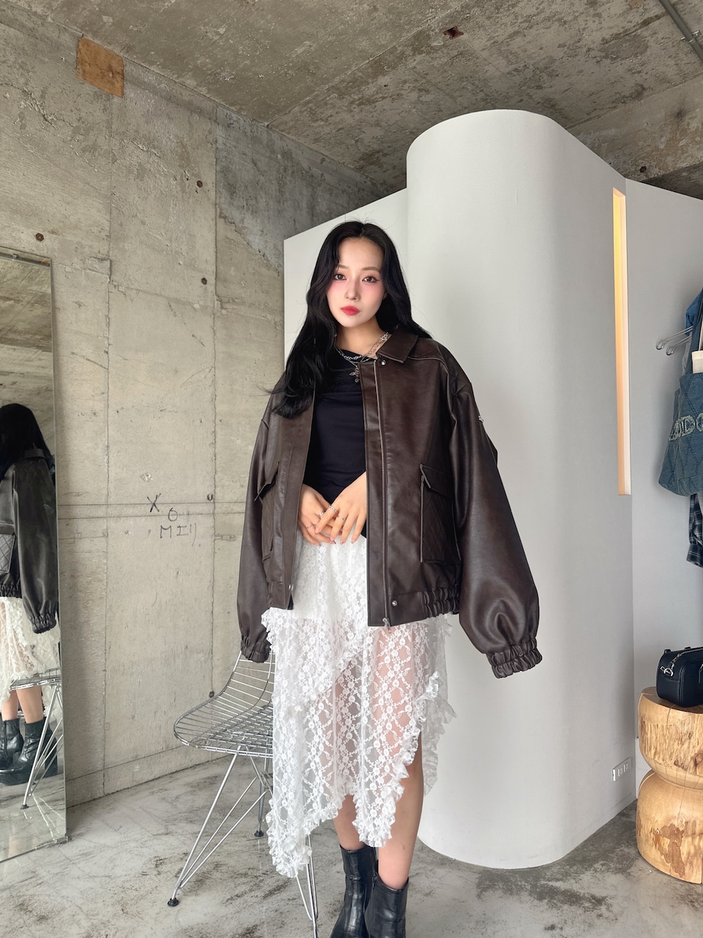 私服👗♡ レーススカートと レザーの合わせ好き❤️