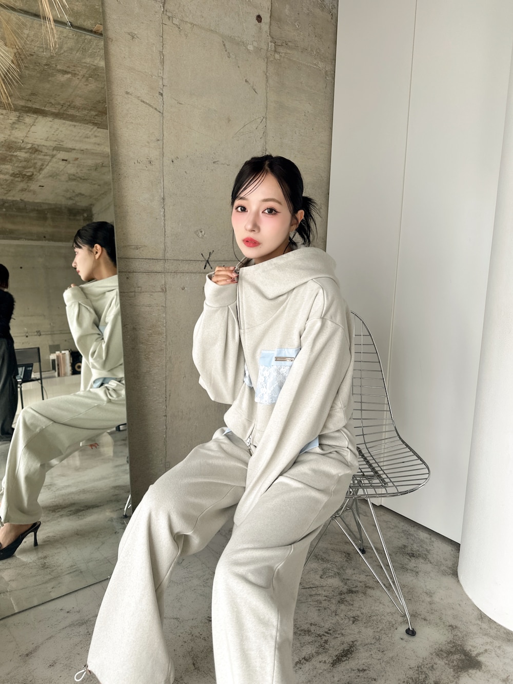 村瀬紗英のパーカー「シャツポケットラメパーカー」を使ったコーディネート