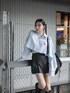 私服👗♡ シャツスタイルで スクールるっく^_^ シャツとスカートの生地は 同じストライプ生地を使ってるので セットアップで着るのがオススメ🥰