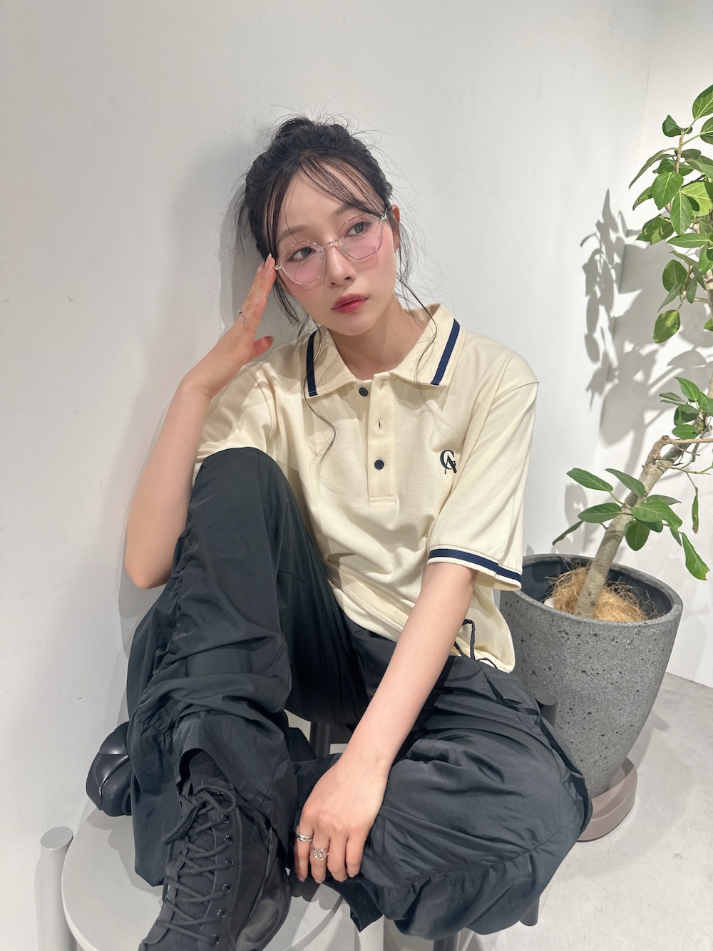 私服👗♡ ユニセックスのポロシャツは サイズ感が可愛いよ😍