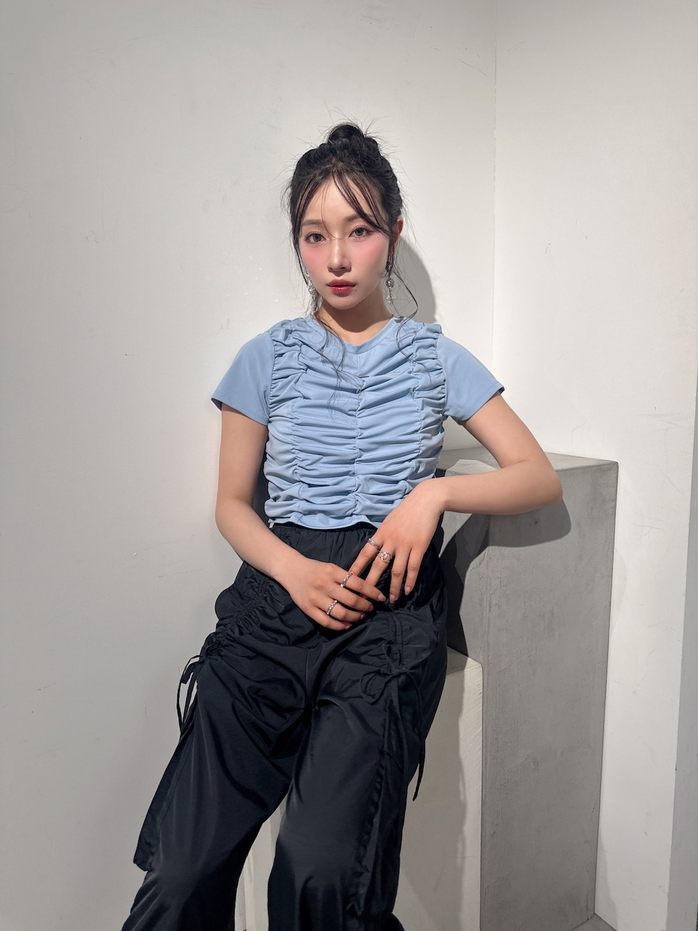 村瀬紗英のTシャツ/カットソー「ギャザーミニT」を使ったコーディネート