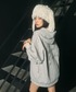 私服👗♡ グレーのオーバサイズパーカー♡ 後ろのロゴと ケーブル網柄の生地が可愛い〜💘