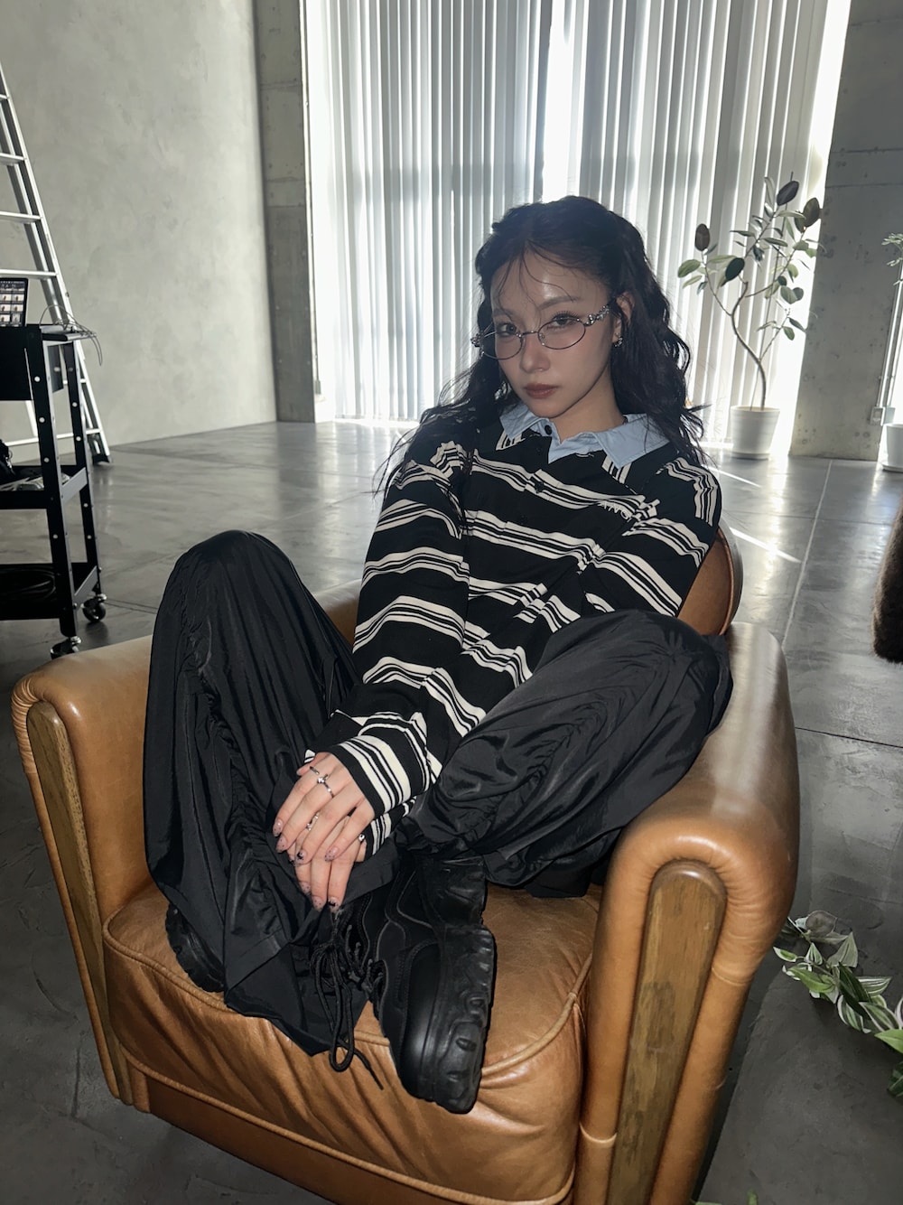 村瀬紗英のポロシャツ「UNISEX ボーダーポロロンT」を使ったコーディネート