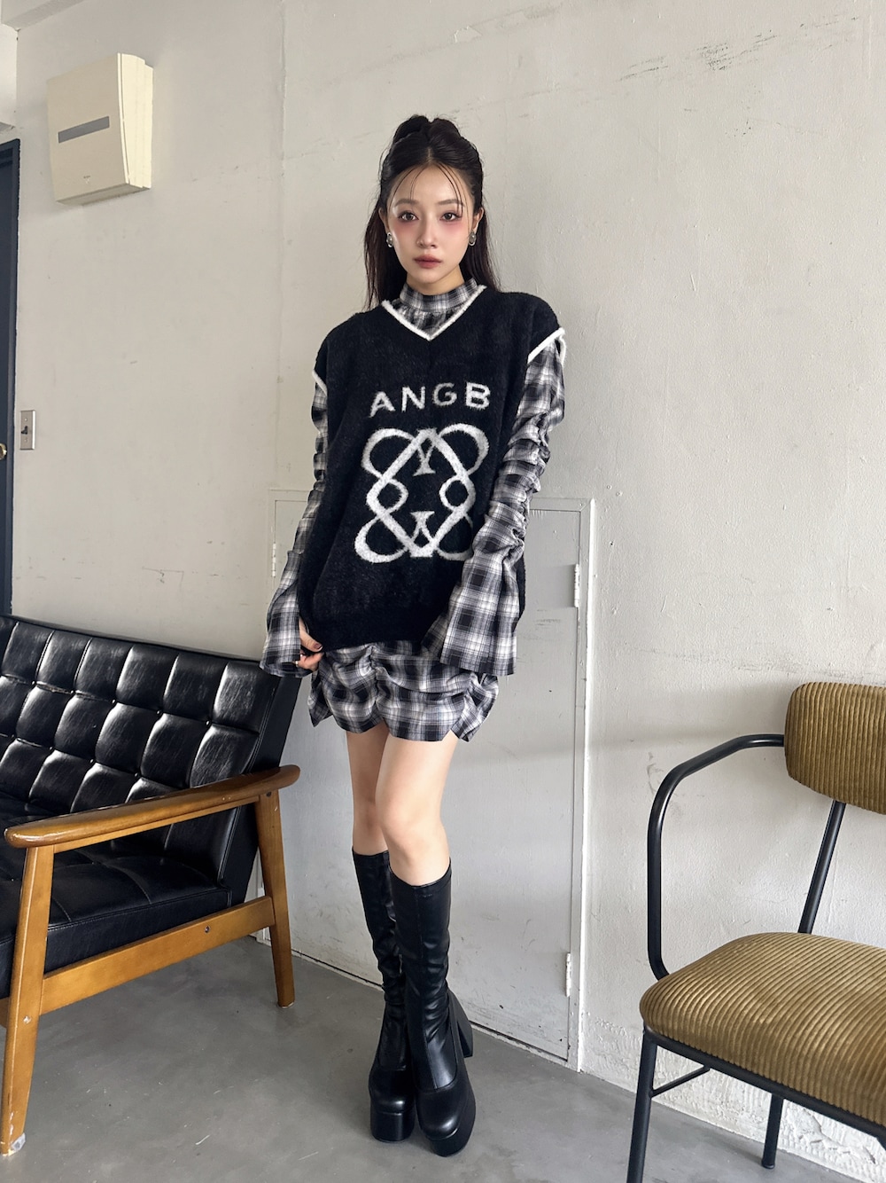 村瀬紗英のワンピース「チェックギャザーミニワンピ」を使ったコーディネート