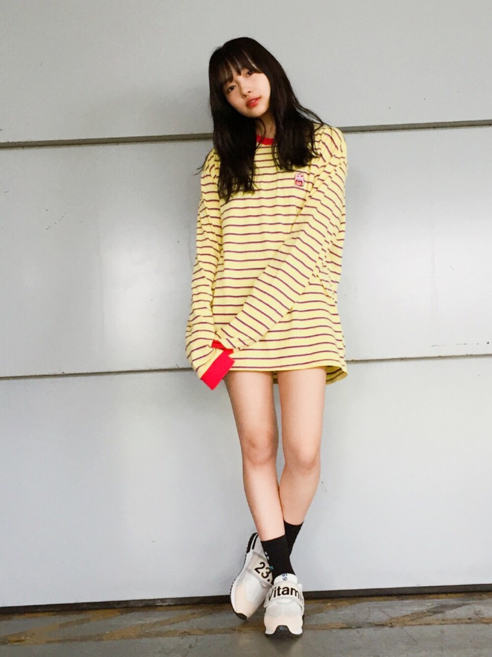 ウォッチありがとうございます👀❤️ 私服👗✨ Lサイズの袖長トップス🙌💭 韓国のALANDの セールで発見したものです😆💕 改めて見ても めっちゃ派手な色だ、、、💊🎈😁 トップスが派手なので、 靴下は黒でスニーカーを合わせました😊! 靴下の恐竜くんのデザインと トップスのデザインの雰囲気が似てる^ ^