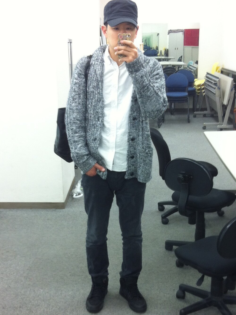 ワークキャップを被ってみたかった。 ニットとデニムを合わせたかった。